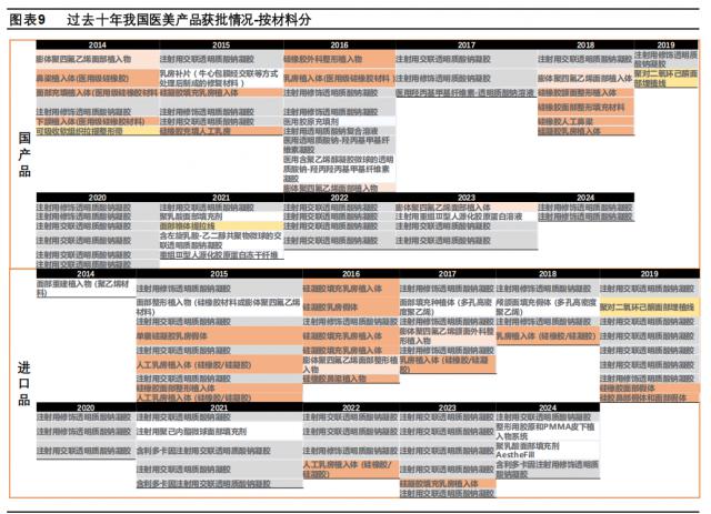 一方面,爱美客正加速产品迭代,寻找下一个"嗨体"。成立以来十年间,爱美客平均每 7 个月就推出一个新品,截至 2024 年底,爱美客共拿下 17 个医疗器械注册证(含 11 个三类医疗器械证)。