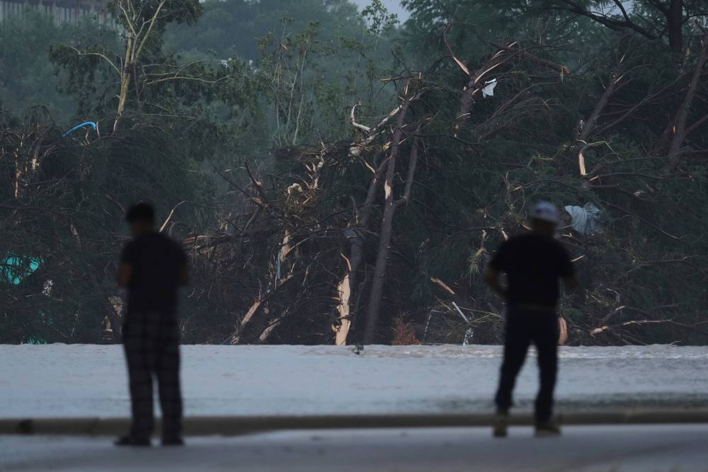 7月4日,在美国得克萨斯州克尔维尔市,人们在瓜达卢普河沿岸查看。新华社/美联