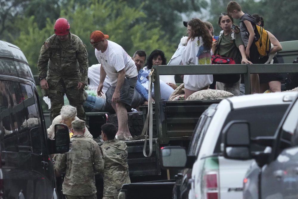 7月4日,在美国得克萨斯州英格勒姆市,应急人员转移受洪水影响的民众。新华社/美联